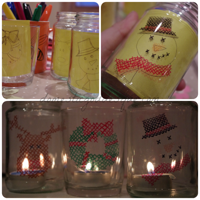 Use Sharpie Markers to make your design onto the jar. Once done, bake in the oven at 150 for 10 minutes or so to set the markers.