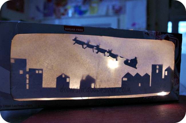 To make the silhouette, you will need a box (cereal box will work too), some card, tracing paper, and a set of battery-operated lights.